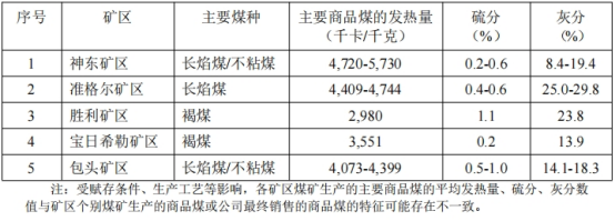 中國神華主要礦區商品煤特征