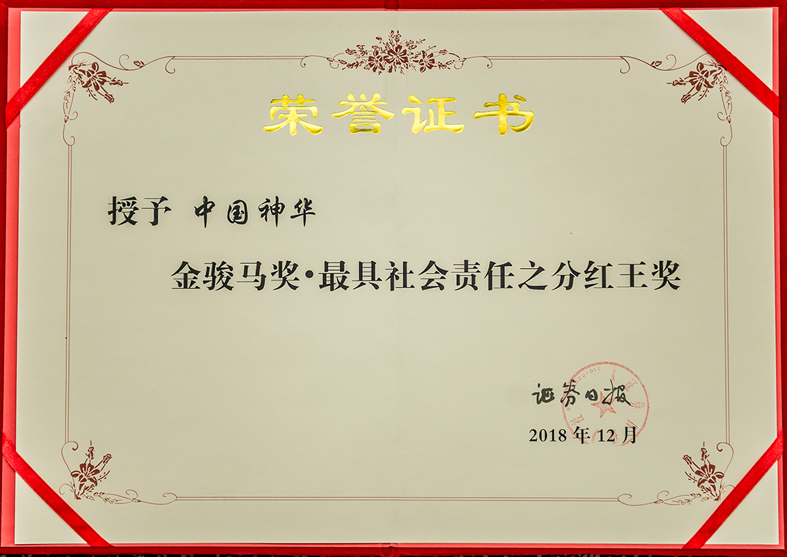 • 中國神華榮獲第二屆金駿馬獎“最具社會責任之分紅王獎”