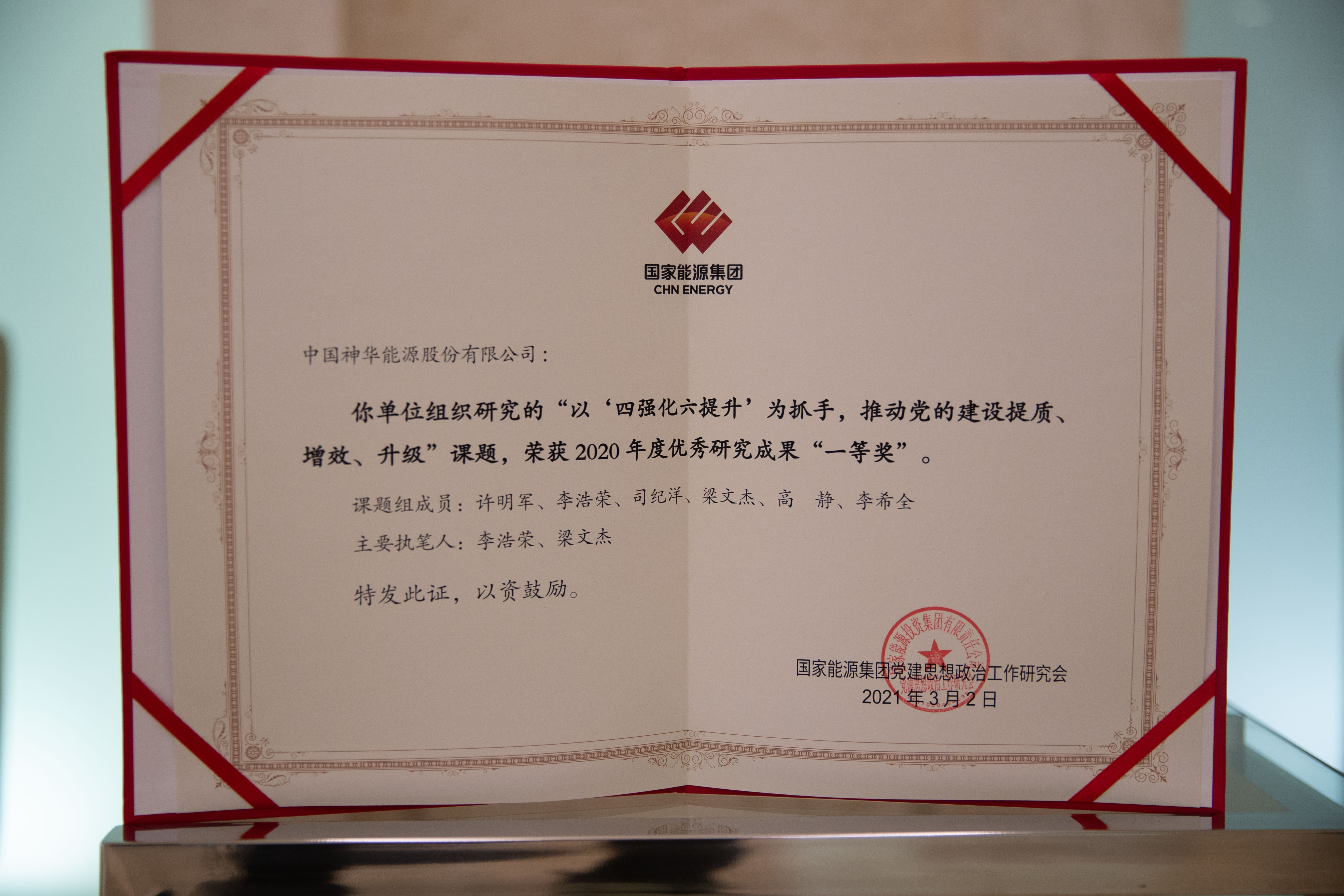 • 2021年3月,“以‘四強化六提升’為抓手,推動黨的建設體質、增效、升級”課題榮獲2020年度優秀研究成果一等獎